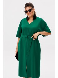 V-образный вырез горловины придает платью ноту утонченности, подчеркивая женственность без излишней откровенности. Дополненное поясом, оно приобретает более структурированный вид, позволяя подчеркнуть талию и создать идеальные пропорции.