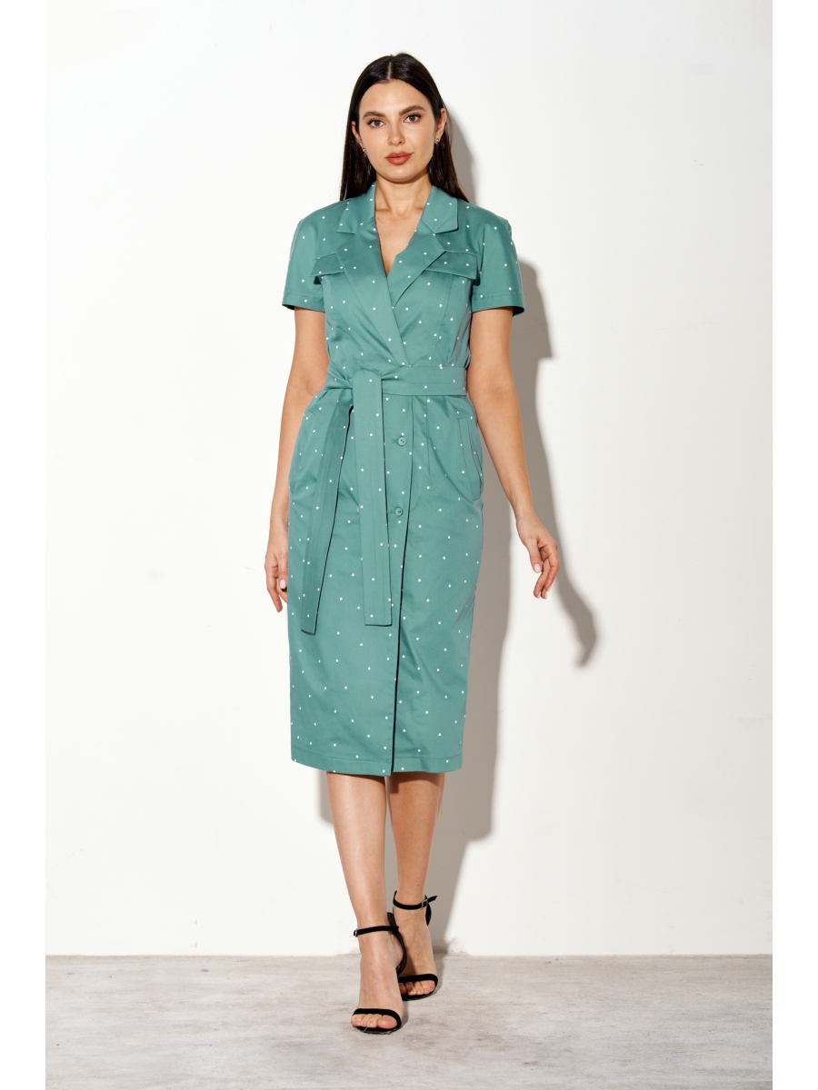 Оформить заказ →Нарядно-повседневное платье прилегающего силуэта с двубортной застежкой на петли и пуговицы. Рельефы по переду изделия для лучшего прилегания. Прорезной карман с листочкой. Рукав реглан-кокетка с втачным декоративным клапаном. Воротник пиджачного типа, спинка со средним швом. Платье со сьемным поясом.