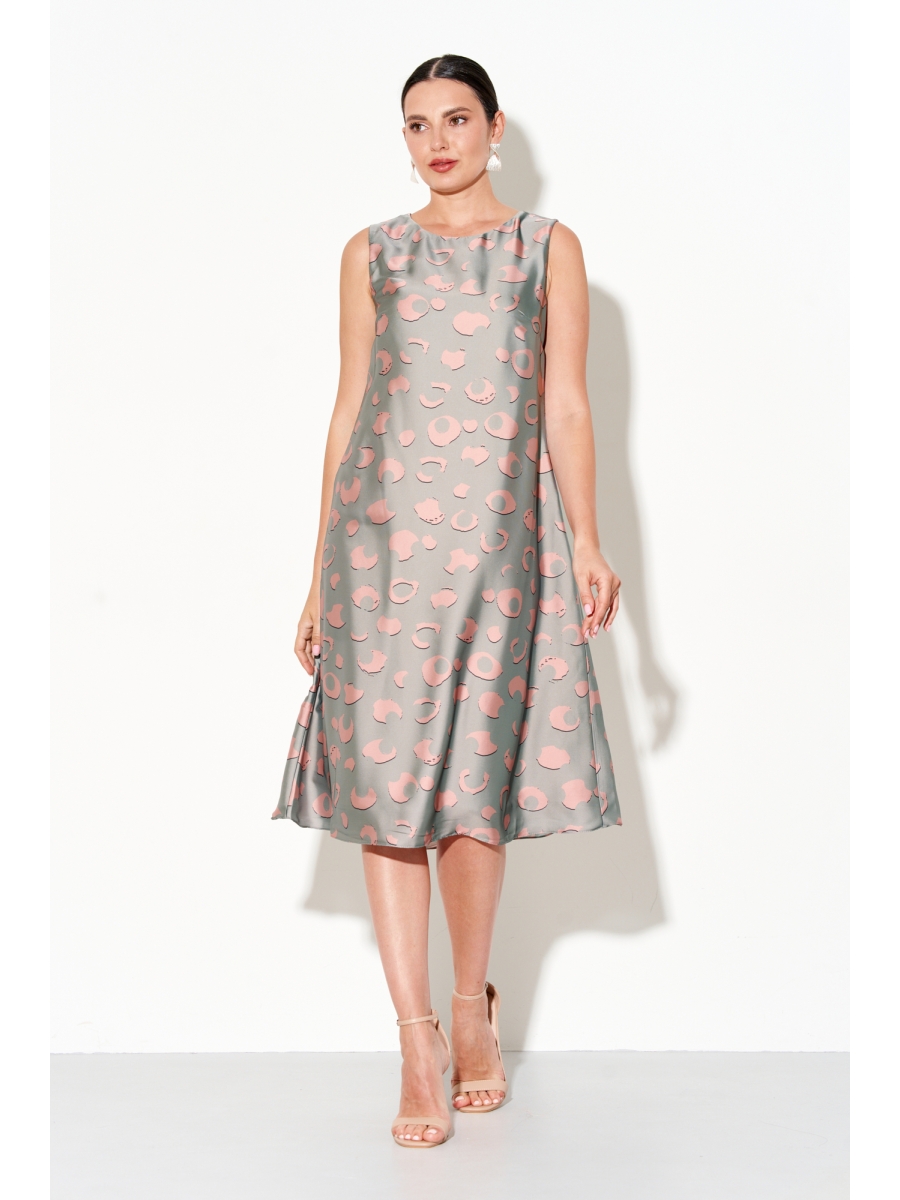 Платье женское А-силуэта выполнено из плательного сатина на подкладке с антистатическим эффектом. Вырез горловины округлой формы, по спинке застежка на петельку и пуговицу в виде "капельки".