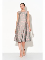 Платье женское А-силуэта выполнено из плательного сатина на подкладке с антистатическим эффектом. Вырез горловины округлой формы, по спинке застежка на петельку и пуговицу в виде "капельки".