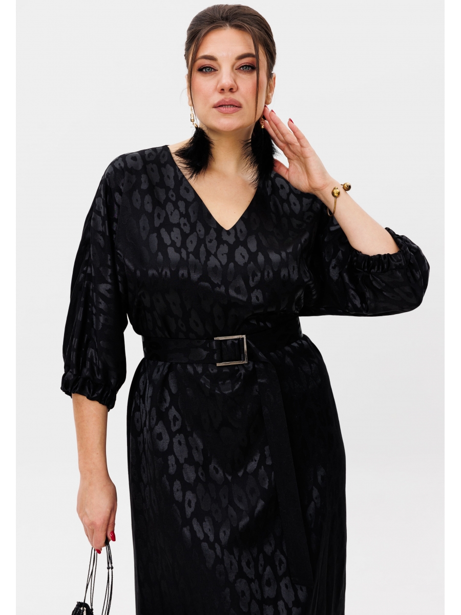 Цельнокроеный рукав-кимоно обеспечивает свободу движений и комфорт, а манжет на резинке придает образу изысканность. Удобный разрез по спинке добавляет нотку кокетства, а пояс подчеркивает талию, создавая женственный силуэт. V-образный вырез горловины элегантно открывает шею, делая образ еще более привлекательным. Это платье от Анелли идеально подойдет как для вечернего выхода, так и для более неформальных мероприятий, позволяя вам чувствовать себя уверенно и стильно в любой ситуации.