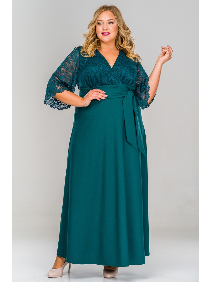 Элегантное длинное вечернее платье из крепа с эластаном с кружевом и рукавом 3/4. Прекрасное платье для вашего торжества.