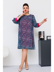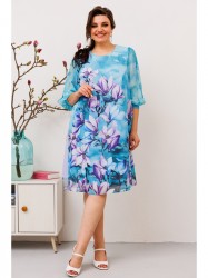 Платье женское, относится к коктейльным платьям. Платье женское, А-силуэта, длиной за колено. Перед с 2-мя нагрудными вытачками, выходящими из проймы. Спинка вверху по горловине с обтачным разрезом, фиксирующимся на 1-ну навесную петлю и 1-ну пришивную пуговицу. Горловина круглая, обтачная, без воротника. Боковые швы с очень высокими разрезами. Рукав втачной, двух шовный, длиной 7/8, с притачной манжетой из отделочной ткани, частично собранной на эластичную тесьму; верхний шов с высоким разрезом. По окату рукава и низу рукава лёгкая сборка. Платье на подкладке из текстильной отделочной ткани. Платье без плечевых накладок.