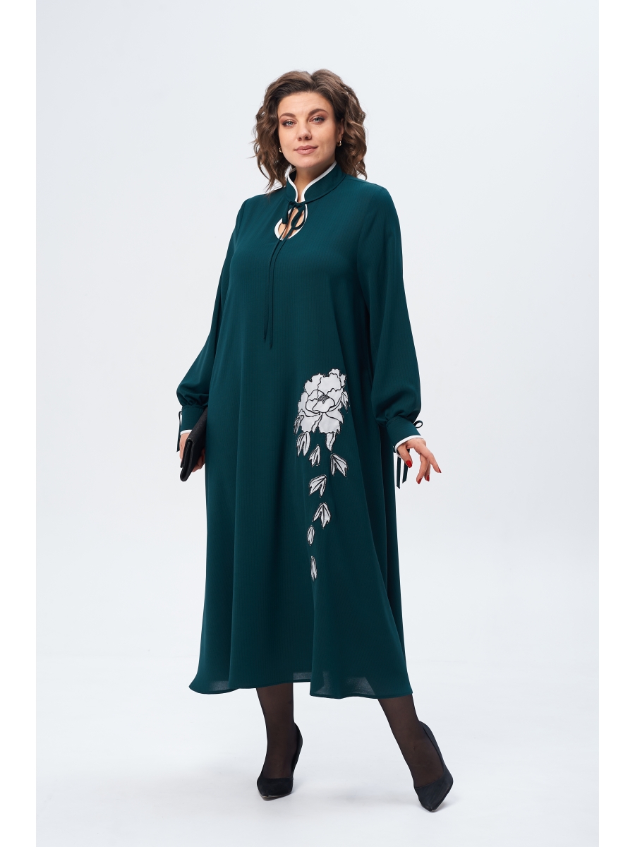 Элегантное и эффектное платье выполнено из легкого плательного материала. Изделие будет отличным вариантом как для офиса, так и для корпоративов или торжеств. Платье свободного трапециевидного силуэта, длиной макси. Перед цельный, спинка с центральным швом. По круглой горловине притачная стойка с завязками из окантовки и капелька по переду, что придает образу особую элегантность. Рукав втачной длинный со сборкой и притачной манжетой по низу; манжета с завязкой из окантовки. В боковых швах имеются функциональные карманы. По переду платье украшает контрастная вышивка. Длинный фасон дает возможность создания стильного образа и обеспечит легкость движений и комфорт. Также с этим платьем можно создать более утонченный праздничный образ, добавив изящную обувь.