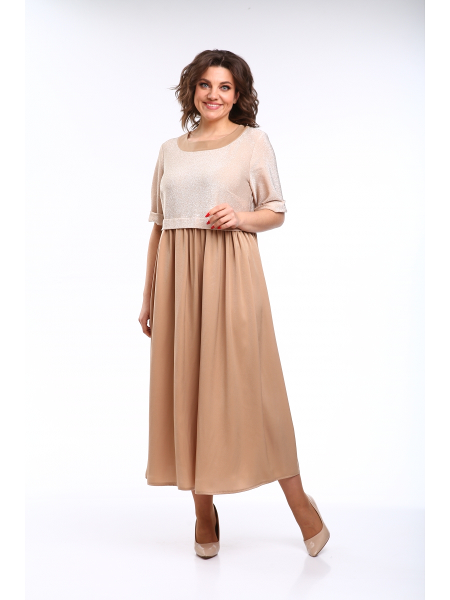 Универсальное и комфортное платье на любой случай вашей жизни. Верхняя часть платья выполнена из фактурного трикотажа с добавлением люрекса; нижняя — из струящейся легкой вискозной ткани с эффектом «атласа». Изделие прекрасно вольется в ваш гардероб. Верх платья с завышенной талией и округлой горловиной с отделочной широкой планкой, спинка с центральным швом и завязкой по горловине. Втачной рукав длиной 3/4. Низ платья — длинная свободная летящая юбка со сборкой из-под верхней части платья, которая обеспечит легкость движений и комфорт. В боковых швах имеет функциональные карманы. Данный фасон дает возможность создания стильного образа как для повседневной носки, так и для праздника. Эта одежда будет уместна как осенью и зимой, так и весной.
