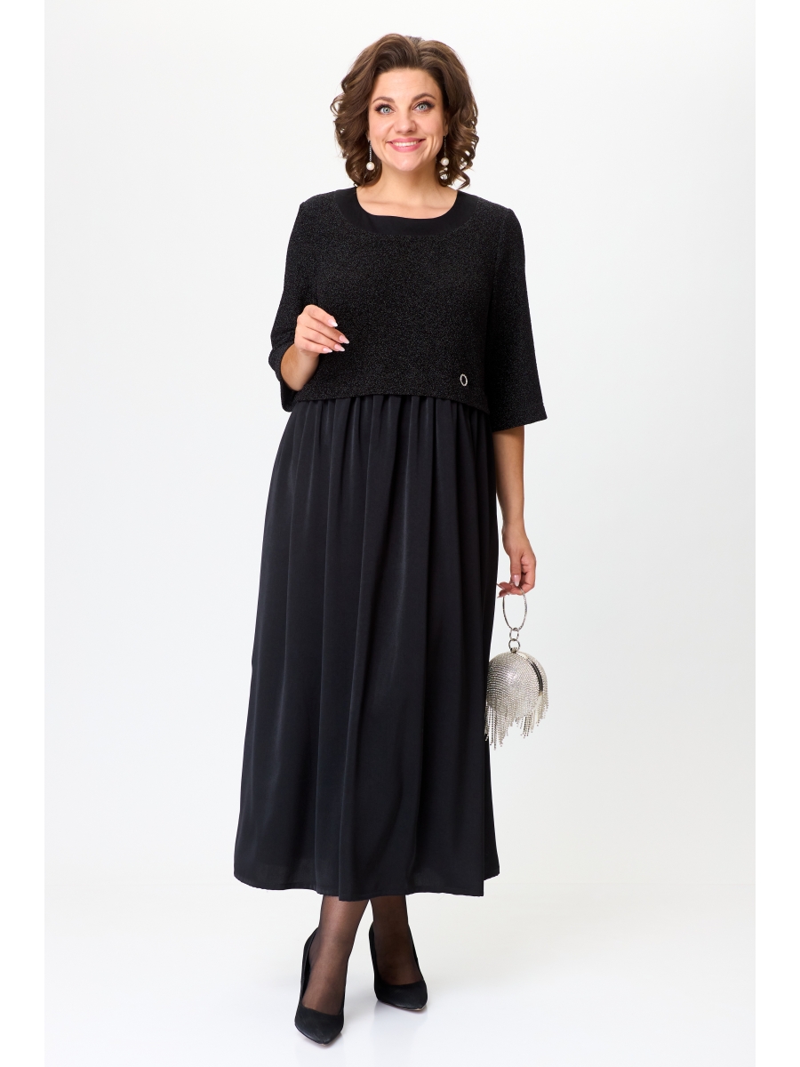 Универсальное и комфортное платье на любой случай вашей жизни. Верхняя часть платья выполнена из фактурного трикотажа с добавлением люрекса; нижняя — из струящегося атласа. Изделие прекрасно вольется в ваш гардероб. Верх платья с завышенной талией и округлой горловиной с отделочной широкой планкой, спинка с центральным швом и завязкой по горловине, по переду декоративный элемент — пришивная брошь. Втачной рукав длиной 3/4. Низ платья — длинная свободная летящая юбка со сборкой из-под верхней части платья, которая обеспечит легкость движений и комфорт. В боковых швах имеет функциональные карманы. Данный фасон дает возможность создания стильного образа как для повседневной носки, так и для праздника. Эта одежда будет уместна как осенью и зимой, так и весной.