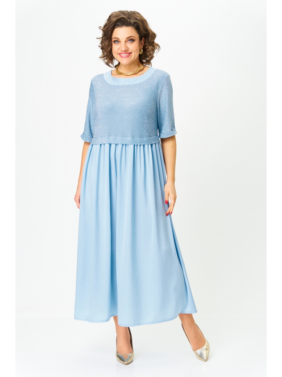 Универсальное и комфортное платье на любой случай вашей жизни. Верхняя часть платья выполнена из фактурного трикотажа с добавлением люрекса; нижняя — из струящейся легкой вискозной ткани с эффектом «атласа». Изделие прекрасно вольется в ваш гардероб. Верх платья с завышенной талией и округлой горловиной с отделочной широкой планкой, спинка с центральным швом и завязкой по горловине. Втачной рукав длиной 3/4. Низ платья — длинная свободная летящая юбка со сборкой из-под верхней части платья, которая обеспечит легкость движений и комфорт. В боковых швах имеет функциональные карманы.