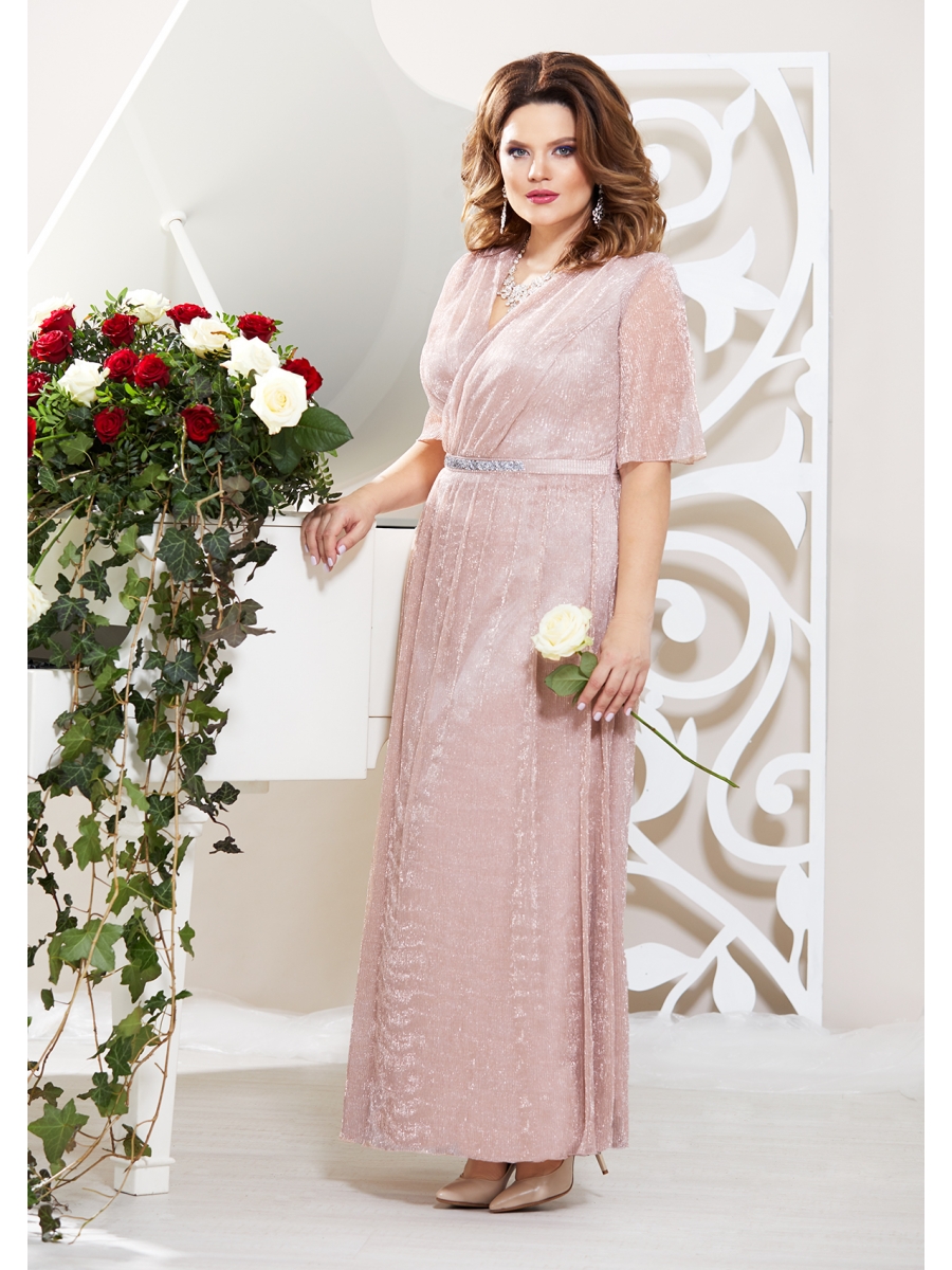 Элегантное вечернее платье выполнено из плиссированной ткани с блеском и атласа в качестве подкладки. Лиф платья на запах, с рельефами и с легкой сборкой от плечевых швов до талии. По переду втачной пояс, декорированный по центру. Рукав втачной до локтя. Юбка платья с легкой сборкой у линии талии. По лифу спинки талиевые вытачки. Потайная застежка-молния в боковом шве платья. Изящное платье, в котором Вы будете блистать на любом торжественном мероприятии!