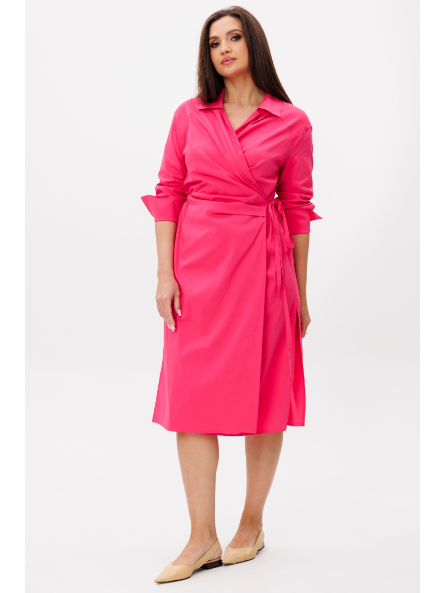 Модель – идеальная для торжественного выхода, да и в принципе для повседневного лука. Конечно же это платье – рубашка с запахом! Оно подходит всем типам фигуры. Лаконичное, но с изюминкой в крое, матовый плотный сатин придает модели пластичность и изысканность. Свободный упрямленный покрой, рубашечный рукав, воротник на - образном вырезе. Полочка отрезная по линии талии, лиф с нагрудной вытачкой и запахом, в боковой шов вставлена отделочная отлетная деталь со складками и поясом. Спина с отрезной кокеткой и мягкой бантовой складкой. Рукав с отделочной патой.