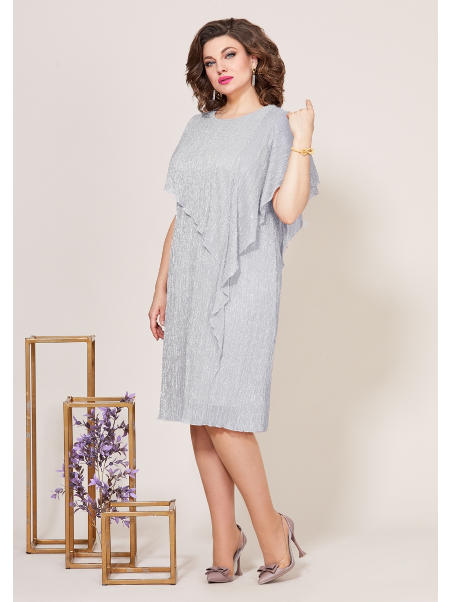 Элегантное, женское платье полу-прилегающего силуэта, выполнено из плиссированной ткани, полностью на трикотажной подкладке. Горловина платья округлой формы, на обтачке, лиф платья с ассиметриным подрезом и вставкой волана из плиссировки, которая переходит на спину. Спинка со средним швом и вытачками, на спике расклешенный волан, который переходит с полочки. Платье декориоровано тесьмой из страз, что придает ему еще больше нарядности. Роскошное платье исполненное из изящной ткани прекрасно дополнит ваш образ на любом мероприятии!