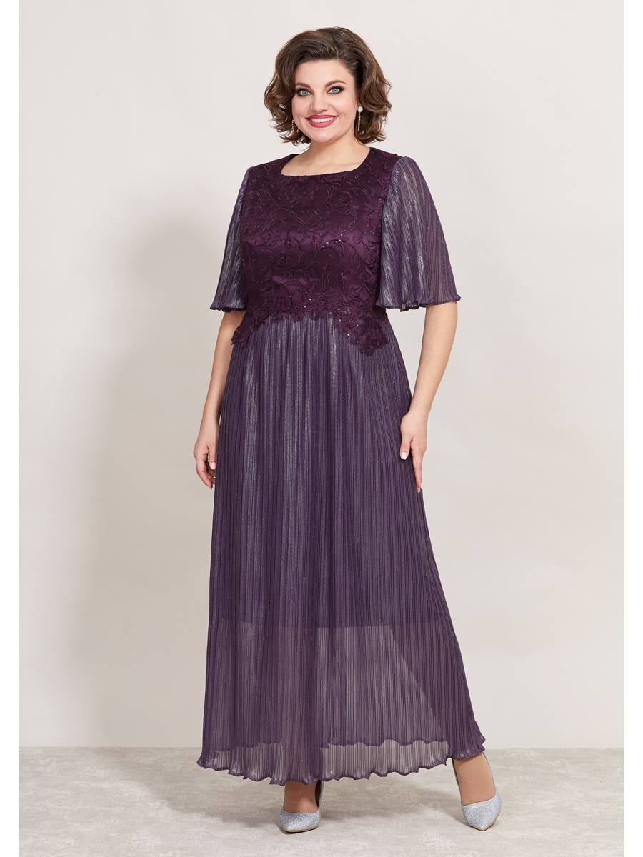 Нарядное платье полу-прилегающего силуэта, выполнено из плиссированной ткани и кружева. Горловина округлой формы, на обтачке, лиф платья отрезной по линии талии, выполнен из кружева, в качестве подкладки атлас. Юбка платья расклешенного силуэта, выполнена из плиссированной ткани, по линии талии аппликация из кружева. Спинка идентична полочке, отрезная по линии талии, верх из кружева, юбка из плиссировки, со средним швом и вытачками, в среднем шве потайная молния. Рукав втачной, расклешенный, оптимальной длины, выполнен из плиссировки. Эффектное, нарядное платье прекрасный выбор для торжественных мероприятий!