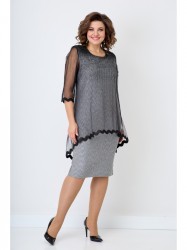 Шикарное платье, которое подойдет для любого предстоящего Вам торжества. Платье состоит из двух слоев, сшитых по пройме рукава и горловине. Нижний слой состоит из фактурного трикотажа с люрексом. Имеются вытачки на груди и сзади на талии. Верхнее платье состоит из сетки, а низ его обработан кружевом. (ПРИМЕЧАНИЕ! Кружево может отличаться от оригинала). Спереди верхнее платье короче, сзади длиннее. Рукав 3/4, манжеты состоят из кружева. Платье без застежки.