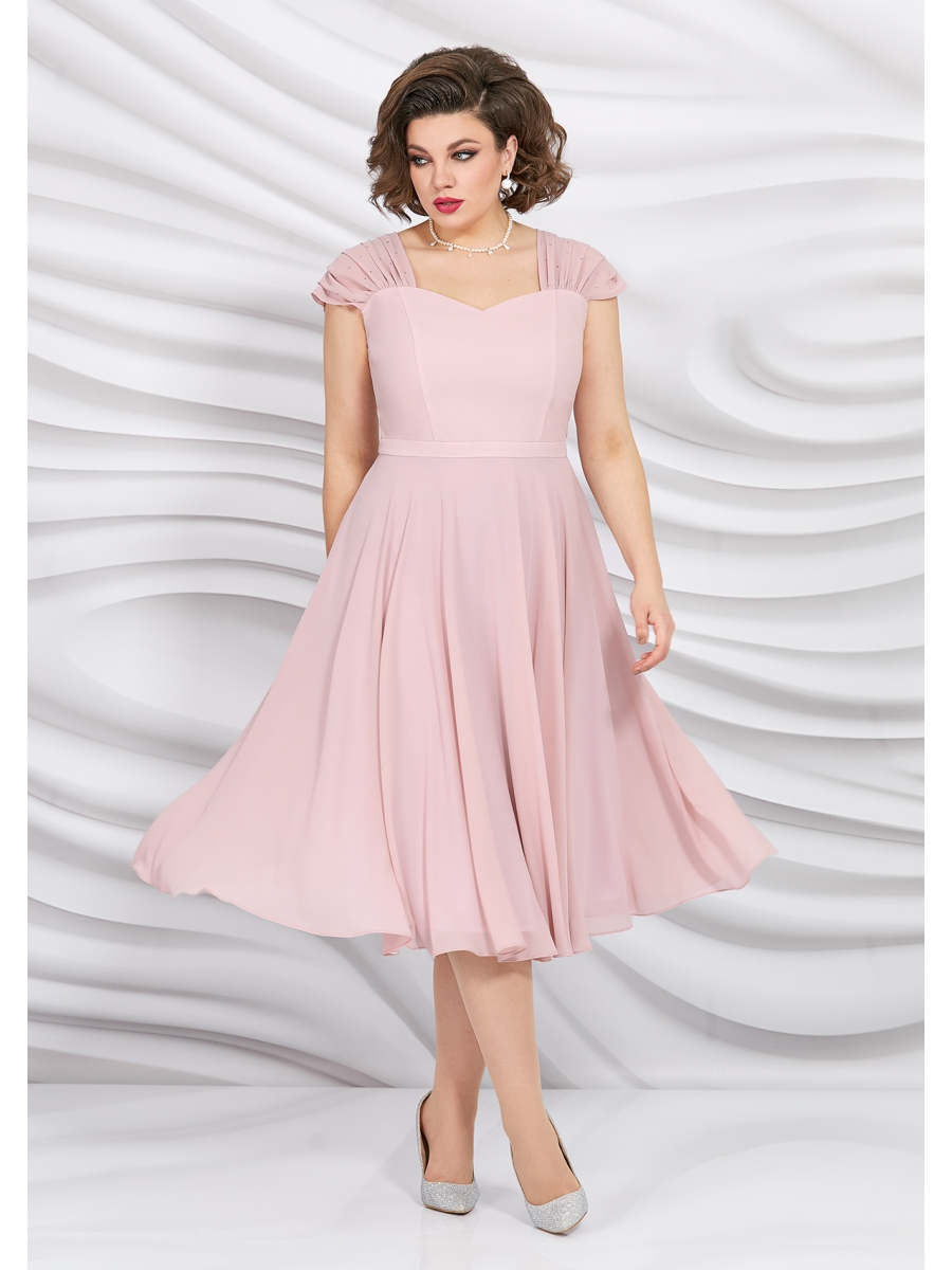 Нарядное женское платье полу-прилегающего силуэта, выполнено из шифона с блеском. Лиф платья отрезной по линии талии, из шифона на подкладке, с рельефами и втачным поясом. Горловина фигурная, кокетка платья присборена по плечевому и плавно переходит в небольшой рукав, кокетка декорирована стразами. Юбка платья расклешенная, средней длины, спинка идентична полочке, лиф отрезной по линии талии, со средним швом и рельефами, в среднем шве потайная молния. Нарядное платье с роскошной юбкой и эффектным декором прекрасно подойдет для торжественных случаев!