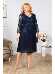 Оформить заказ →Платье женское, полуприлегающего силуэта, расширенное к низу, на подкладке из дышащей, приятной на ощупь и достаточно эластичной ткани, отрезное по линии талии. Длина платья по среднему шву спинки 106 см. На верхнюю часть лифа нашит гипюр, с нагрудными выточками, переходящий вниз нашивными аппликациями. Рельефы переда выходят из проймы, проходят через центр груди вниз. Рельефы спинки выходят из проймы вниз, в среднем шве обработана застёжка на потайную тесьму молнию. Ниже линии талии на боковых частях горизонтальные подрезы. Расширение низа юбки за счёт отрезных бочков. Горловина углублённая спереди, обтачная, фигурная. Рукава втачные, двухшовные, выполнены из кружева. Изделие с плечевыми накладками.