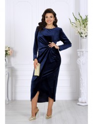 Это не просто платье — это воплощение вечерней роскоши и утончённого стиля. Бархатистый велюр сияет в свете софитов, обволакивая фигуру мягким, но точным прилегающим силуэтом. Каждое движение в нём - как на красной дорожке. Асимметричный крой и эффектная драпировка с перекрутом на талии создают идеальные пропорции, превращая силуэт в произведение искусства. Высокий разрез спереди добавляет смелую, но благородную нотку, а длинные рукава и элегантная округлая горловина сохраняют изысканную сдержанность. Это платье создано для свадеб, торжеств, гала-ужинов и особых вечеров, когда каждая деталь должна подчеркивать ваш высокий вкус и статус.