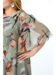 Особенность этого нарядного платья-рукав пелерина, вшитый в рельефы переда и спинки, который широко использовал в своих коллекциях Пьер Карден. Завершает образ подчёркивающий фигуру завязывающийся пояс выше линии талии.