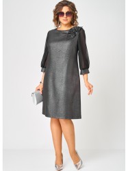 Декором платья служит декоративный пришивной элемент со съемной брошью.