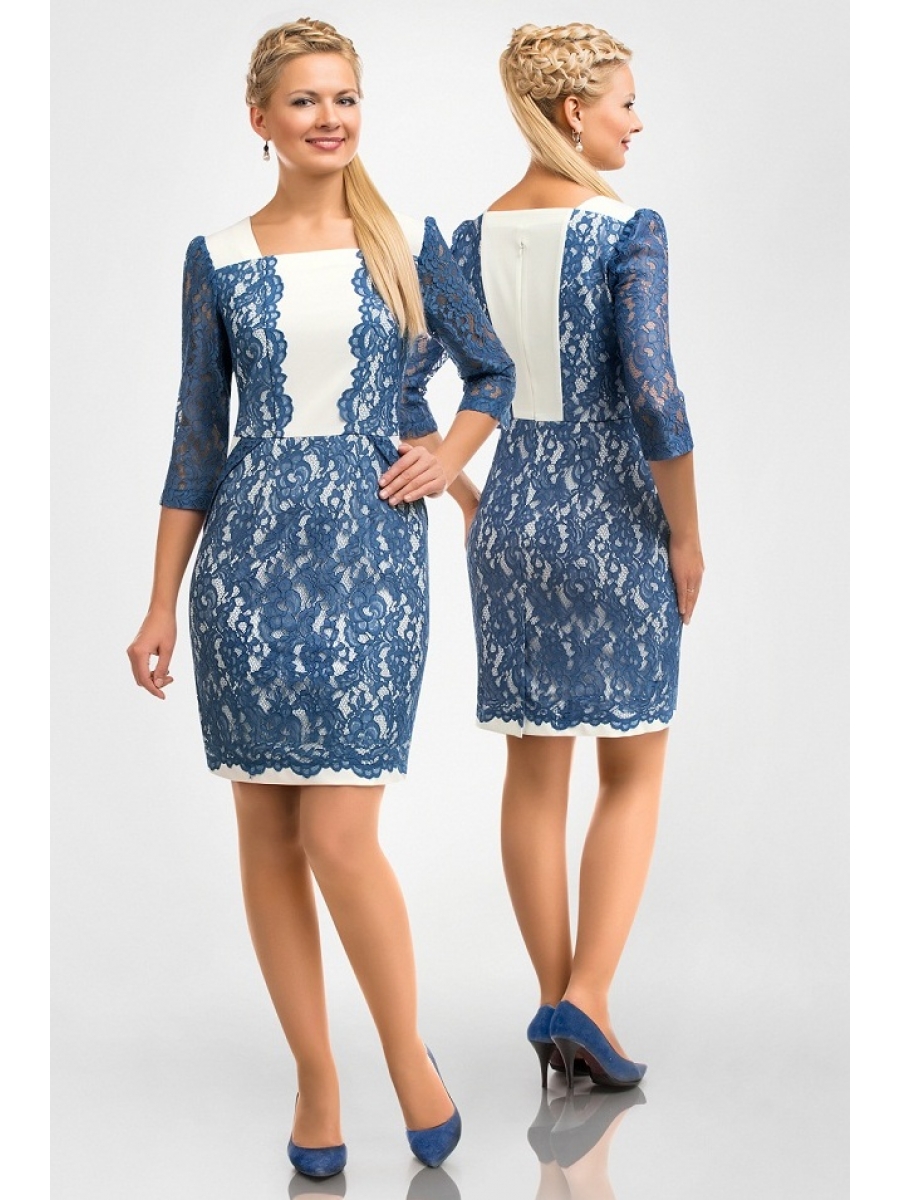 Элегантное стильное платье выполненное в сочетании ткани и изысканного кружева. Модель полуприлегающего силуэта, отрезное по линии талии.