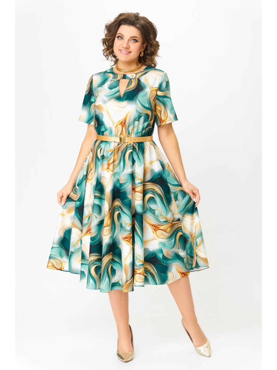 Нарядное платье 833 бирюзово-золотой принт, Swallow – купить с доставкой в Нижнем Новгороде на nizhny-novgorod.belpodium.ru