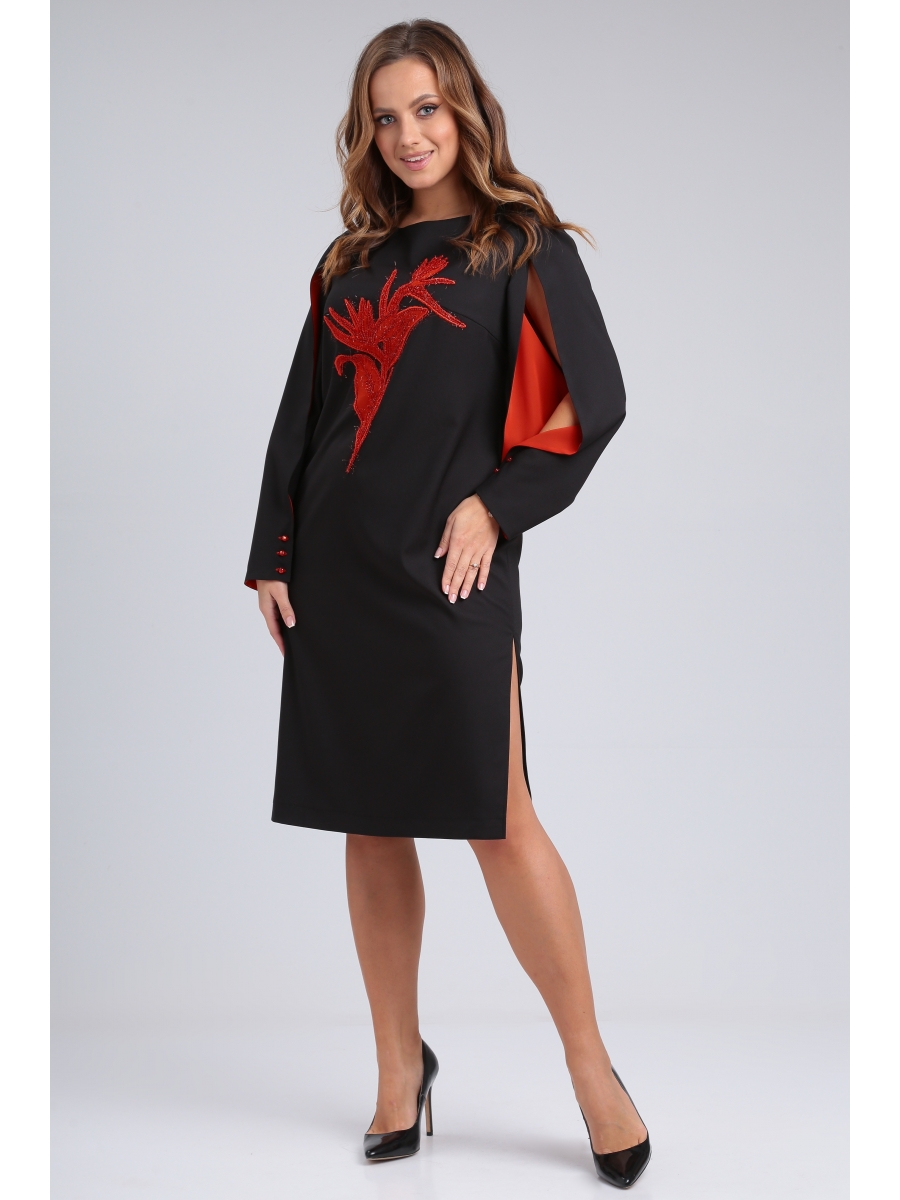 Эффектное нарядное платье классического черного цвета с яркими акцентами подчеркнет Вашу индивидуальность и стиль. Фасон платья подойдет на любой тип фигуры, выгодно скроет недостатки и удачно подчеркнёт достоинства. В таком платье Вы будете неотразимы на любом празднике или торжестве.