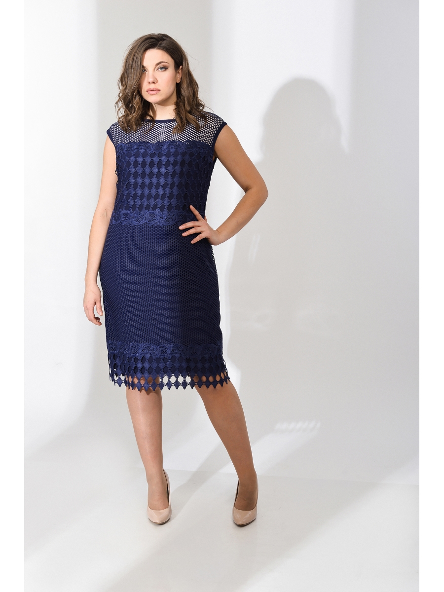Платье футляр из ажурного полотна на трикотажной подкладке с приспущенной проймой рукава. Застежка молния по спинке 60 см.