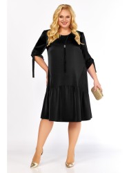 Нарядное платье лаконичного свободного силуэта элегантно подчеркнёт вашу красоту и придаст образу утончённость. Модель выполнена из стрейчевой струящейся ткани с матовым блеском. Перед с нагрудными вытачками, декоративными клиньями(переходящими на спинку), по низу с воздушным воланом со сборкой. Спинка со средним швом и воланом. Округлый вырез горловины дополнен декоративным элементом из основной ткани, плавно спадающим вдоль переда. Рукав втачной с вертикальным швом, длиной ниже локтя, по низу с завязывающейся патой.