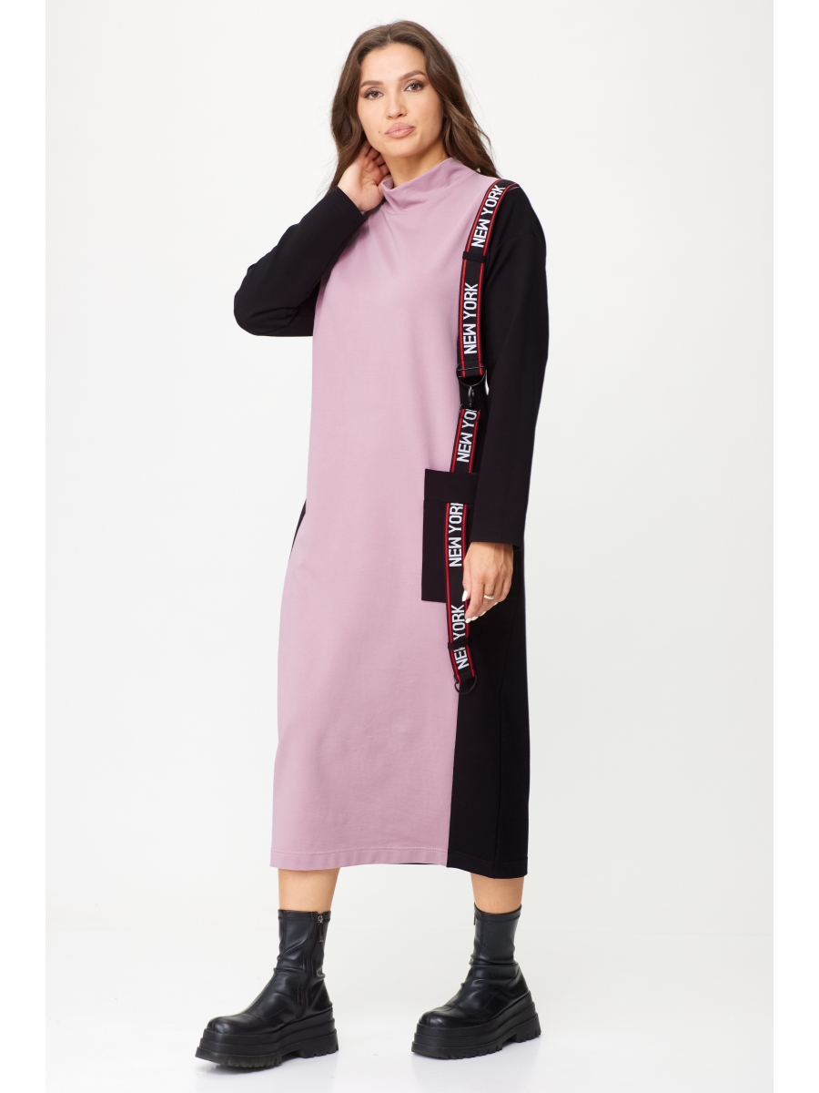 Платье женское трикотажное прямого силуэта. Центральная часть переда из отделочной ткани.