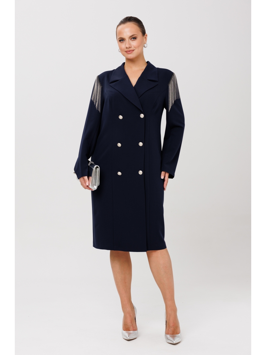 Создайте свой неповторимый образ с этим стильным женским платьем от Anastasia! Оно имеет удивительно комфортный крой, который скроет все недостатки фигуры. Пуговки и металлизированная бахрома служат элементом, придающим модели оригинальность. Платье женское из текстильной ткани двубортное, полуприлегающего силуэта. По полочке и спинке прилегание создается за счет рельефов, выходящих из проймы. По спинке - средний шов, переходящий в шлицу. Вороник пиджачного типа. Застежка на петли и пуговицы. Рукав втачной двухшовный со шлицей и пуговицами. По окату рукава отделка в виде металлизированной бахромы.