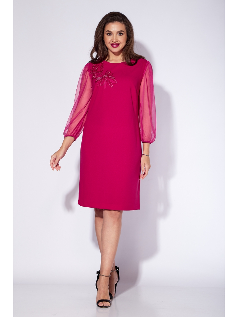 Оформить заказ →Платье женское, полуприлегающего силуэта с рукавом длиной 7/8. Рукав выполнен из отделочной ткани(сетка), фантазийной формы. По верху рукава сборка. Низ так же присобран на узкую резинку. По переду нагрудные и талевые вытачки. Перед платья, сверху задекорирован вышивкой. Вырез горловины круглой формы. По спинке средний шов и талевые вытачки. Застежка в шве на потайную "молнию". По низу разрез. Длина платья по спинке 48-50 93 см, 52-56 96 см.