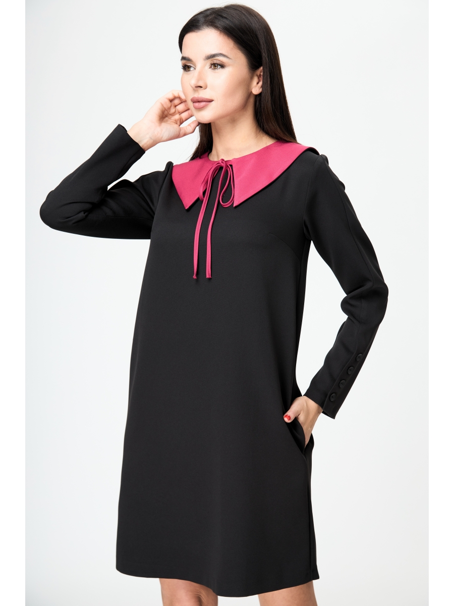 Модельной особенностью платья является съёмный воротник-тренд сезона, который по желанию можно носить как контрастным, так и однотонным.