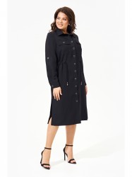 Платье-рубашка полуприлегающего силуэта выполнено из натуральной ткани (вискоза 90%). Платье свободного силуэта со втачными рукавами, внутренней патой и манжетой, что позволяет регулировать высоту рукава и представляет собой стильную деталь с изысканным акцентом; воротник рубашечный; по переду накладные карманы и функциональная кулиса по линии талии с декоративным шнуром-завязкой; застежка на петли и пуговицы.