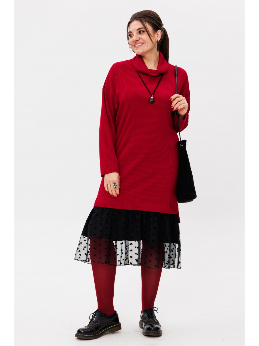 Сетчатая вставка по низу платья добавляет игривости и динамичности. Этот элемент не только украшает изделие, но и делает его более интересным визуально.