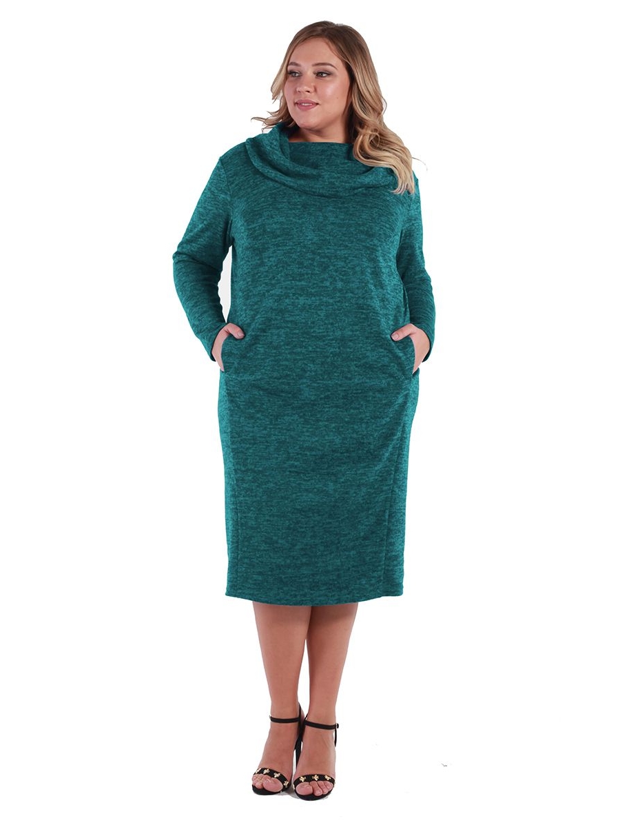 Платье с воротником "хомут" из джерси меланж, зеленого цвета