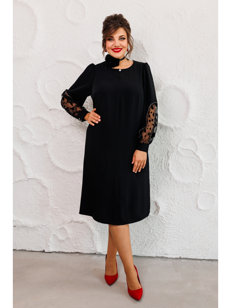 Оформить заказ →Платье женское, относится к торжественной одежде. Платье женское А-силуэта, длиной за колено. Перед с 2-мя нагрудными вытачками со средним швом, вверху с разрезом, фиксирующимся по горловине на1-ну навесную петлю и 1-ну пришивную пуговицу. Спинка с 2-мя таллиевыми вытачками и средним швом. Горловина круглая обточная, без воротника. Рукав втачной, длинный, одно шовный. Скат рукава с лёгкой сборкой, низ рукава с декоративным подрезом, нижняя часть подреза из отделочной ткани шов соединения с втачным отделочным кантом, низ рукава со сборкой и притачной манжетой с застёжкой на 2-е обмётанные петли и 2-е пришивные пуговицы. Платье на подкладке. Платье без плечевых накладок.