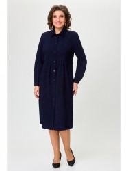 Платье женское полуприлегающего силуэта с втачным рукавом. Застежка на пуговицы на притачных планках. По горловине отложной воротник на отрезной стойке. По переду рельефы от проймы с боковыми карманами. Средняя часть переда со сборкой по линии талии. По спинке средний шов. Рукав длинный, по низу притачная манжета с застежкой на пуговицу.