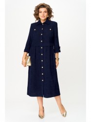 Платье женское полуприлегающего силуэта с втачным рукавом. Застежка на пуговицы на притачных планках. По горловине отложной воротник на отрезной стойке. Верх платья с завышенной талией. По переду накладные карманы. Низ платья – длинная свободная юбка со сборкой из-под верхней части платья и карманами в боковых швах. Рукав длиной 3/4 с отложной манжетой и патой на пуговице.