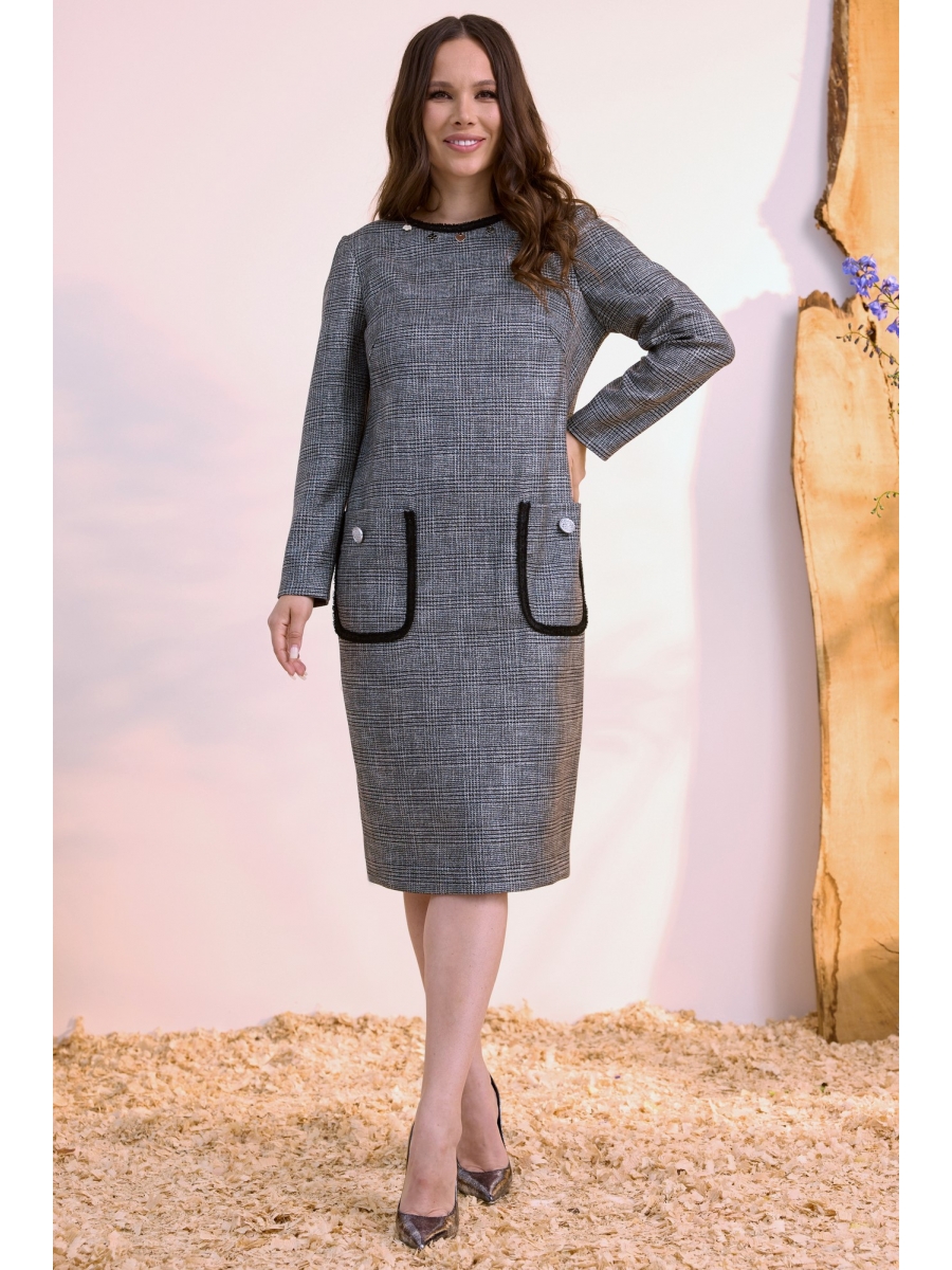 Оформить заказ →Элегантное платье полуприлегающего силуэта из комфортной костюмной ткани, без подкладки. Рукав длинный, втачной. По спинке застежка на молнию. Горловина с О-образным вырезом. Платье дополнено накладными карманами. Горловина и карманы дополнены красивой декоративной тесьмой. По спинке молния дополнена бархатным бантом.