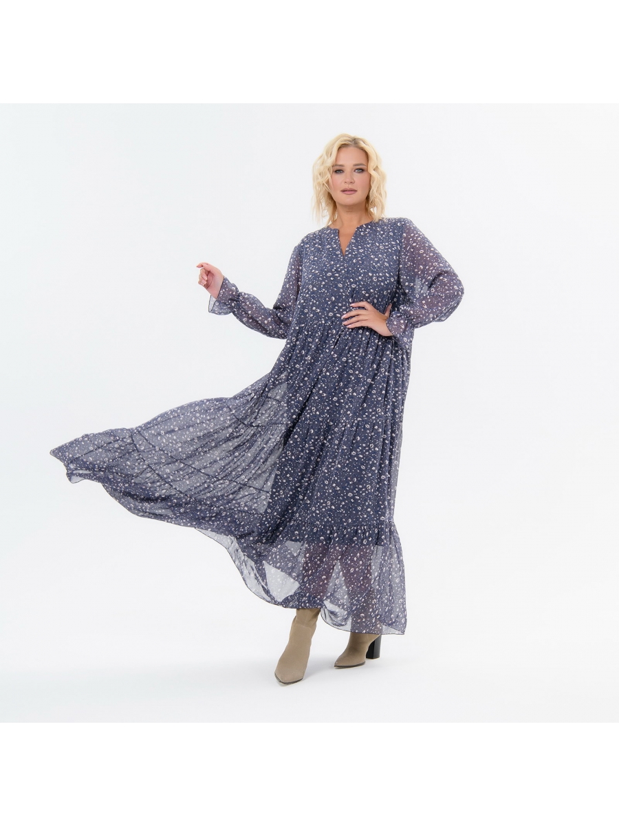 Нижняя часть состоит из 3-частей, каждая из которых присборенная и образует каскадную струящуюся юбку.