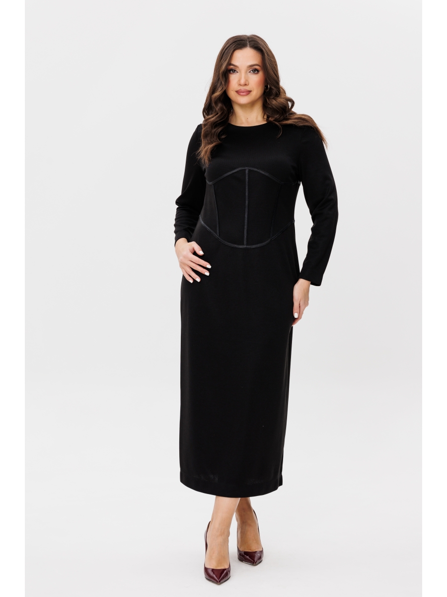 Максимальная длина и строгая лаконичность, в сочетании с интригующим корсетом. Это платье просто великолепно. Полуприлегающий силуэт, втачной покрой. Полочка с талиевыми вытачками и оригинальными фигурным подрезом. Спинка с центральным швом, талиевыми вытачками , высоким разрезом и потайной молнией.