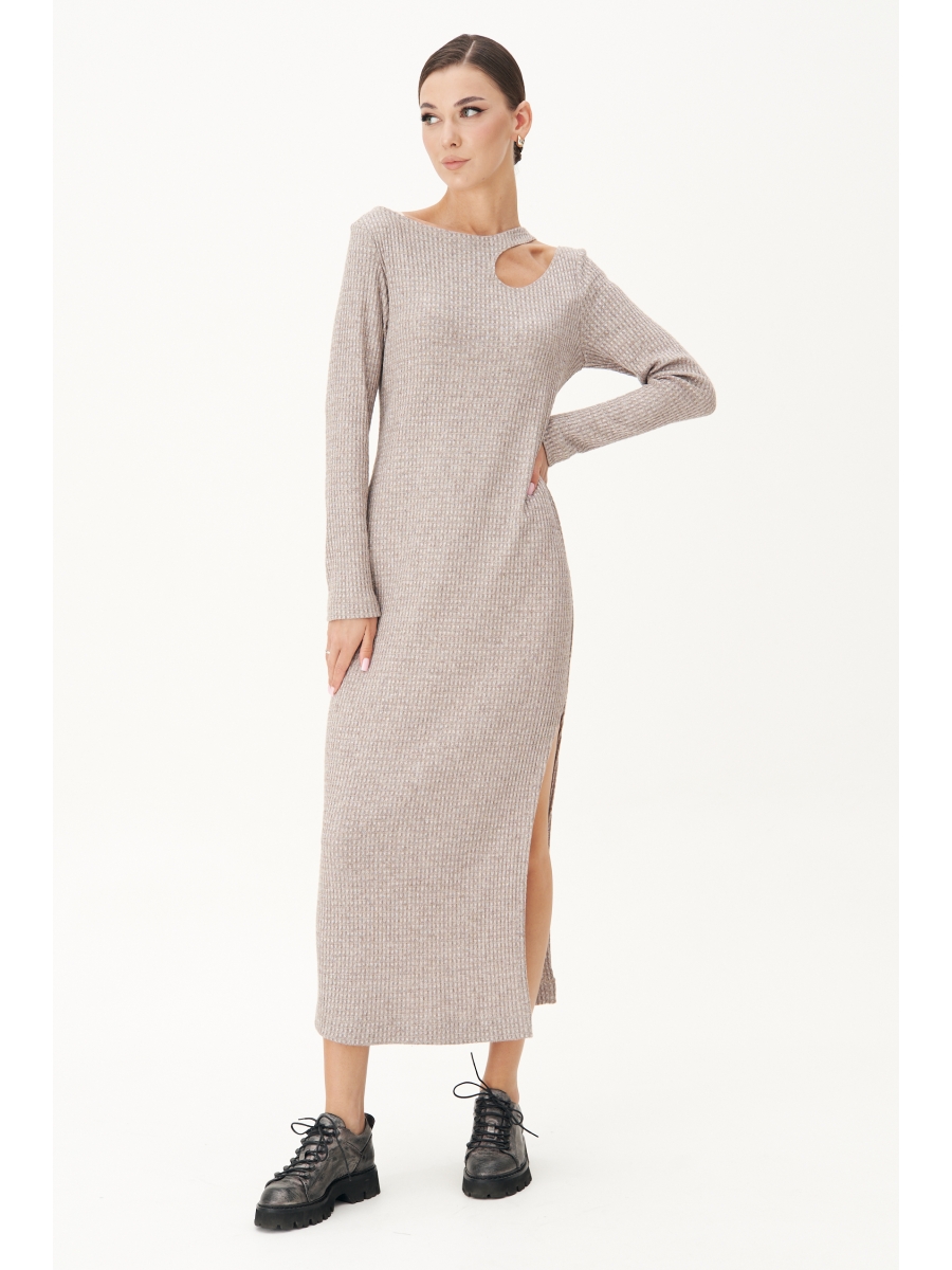 Невероятно комфортное трикотажное полотно с напылением, платье, на которое едва взглянув, сразу хочется надеть. Прилегающий силуэт, втачной покрой, интригующая капля в области декольте, эффектный разрез по боковому шву.