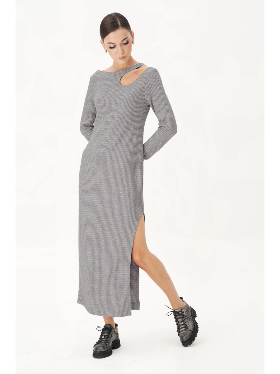 Невероятно комфортное трикотажное полотно с напылением, платье, на которое едва взглянув, сразу хочется надеть. Прилегающий силуэт, втачной покрой, интригующая капля в области декольте, эффектный разрез по боковому шву.