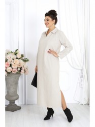 Платье женское, прямого силуэта, расширенное к низу, выполнено из трикотажного полотна. Платье женское прямого силуэта, длиной по среднему шву спинки 124 см, от шва втачивания воротника. Перед платья с нагрудными вытачками из проймы. Спинка со средним швом. В боковых швах обработаны карманы и разрезы. Воротник рубашечного типа, по переду планка «поло». Рукав втачной, одношовный, длиной 57 см. Платье без подкладки.