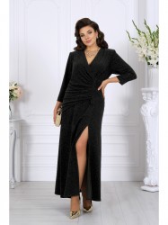 Асимметричный перед с запахом и деликатными драпировками визуально стройнит и формирует правильный силуэт для женщин с формами. Глубокий разрез добавляет образу легкой смелости, оставаясь элегантным и уместным на торжественных мероприятиях.
