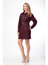 Платье-рубашка из эко-кожи свободного покроя с накладными карманами-книга и клапаном. Спущенная линия плеча, втачной одношовный рукав на манжете. Застежка на пуговицы по притачной планке. Отложной воротник на стойке.