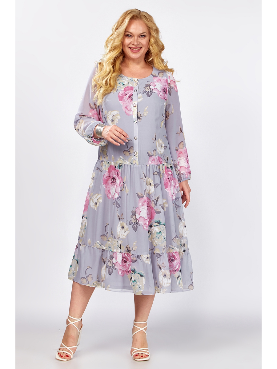 Легкое, воздушное платье из шифона на трикотажной подкладке для женщин подарит ощущение летнего бриза даже в самый знойный день. Этот элегантный наряд обязательно привлечет внимание окружающих! Нежный дизайн ткани добавляет шарм и делает его по-настоящему женственным. Крой А-силуэт нарядного изделия подходит как для повседневного образа, так и для особых случаев. Силуэт модели выделяет женственность фигуры и делает образ стильным. Платье создано для тех, кто предпочитает удобство и стиль в одном флаконе. Миди-длина платья и воланы подчеркнут грацию фигуры и добавят загадочность Вашему образу. Перед платья частично на застежке на петли и пуговицы. Рукав втачной, по низу на резинке. Выбрав эту модель, Вы точно будете выглядеть неповторимо на любых мероприятиях!