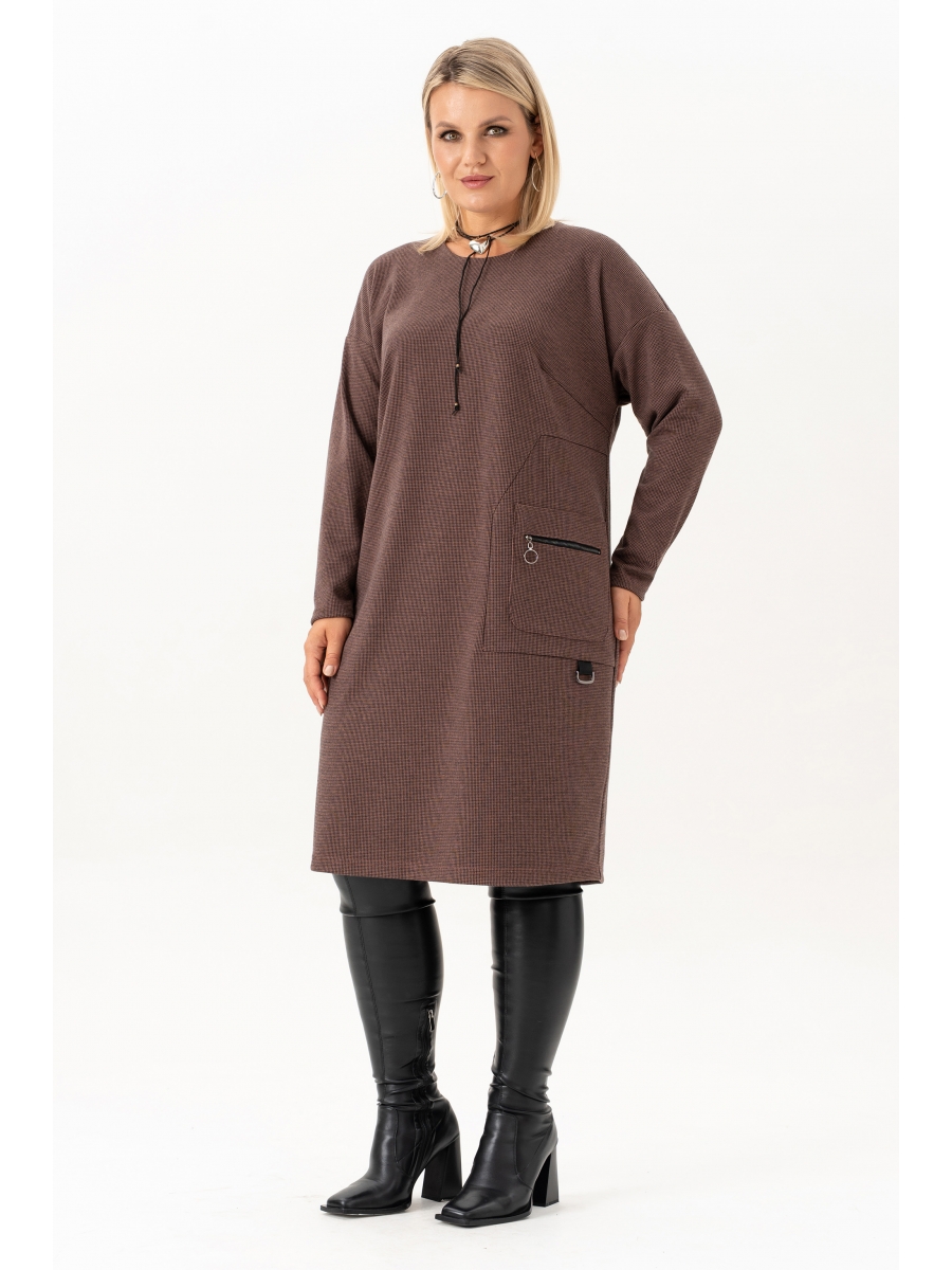 Женское платье прямого силуэта, из трикотажного полотна. На полочке обработан накладной карман с молнией и. Рукав длинный со спущенной линией плеча. Спинка со средним швом и талевыми выточками. Фасон интересен тем, что модельные линии как нельзя лучше подчеркивают плавные изгибы женской фигуры. В данной модели платья Вам не скрыться от неравнодушных взглядов противоположного пола. Оно станет отличным выбором осенью и зимой для офиса, для праздника, на каждый день, а также для прогулок. Платье подойдет как для высоких, так и для невысоких девушек и женщин. Такой стильный наряд для полных станет любимой вещью в гардеробе и сделает Ваш образ незабываемым!
