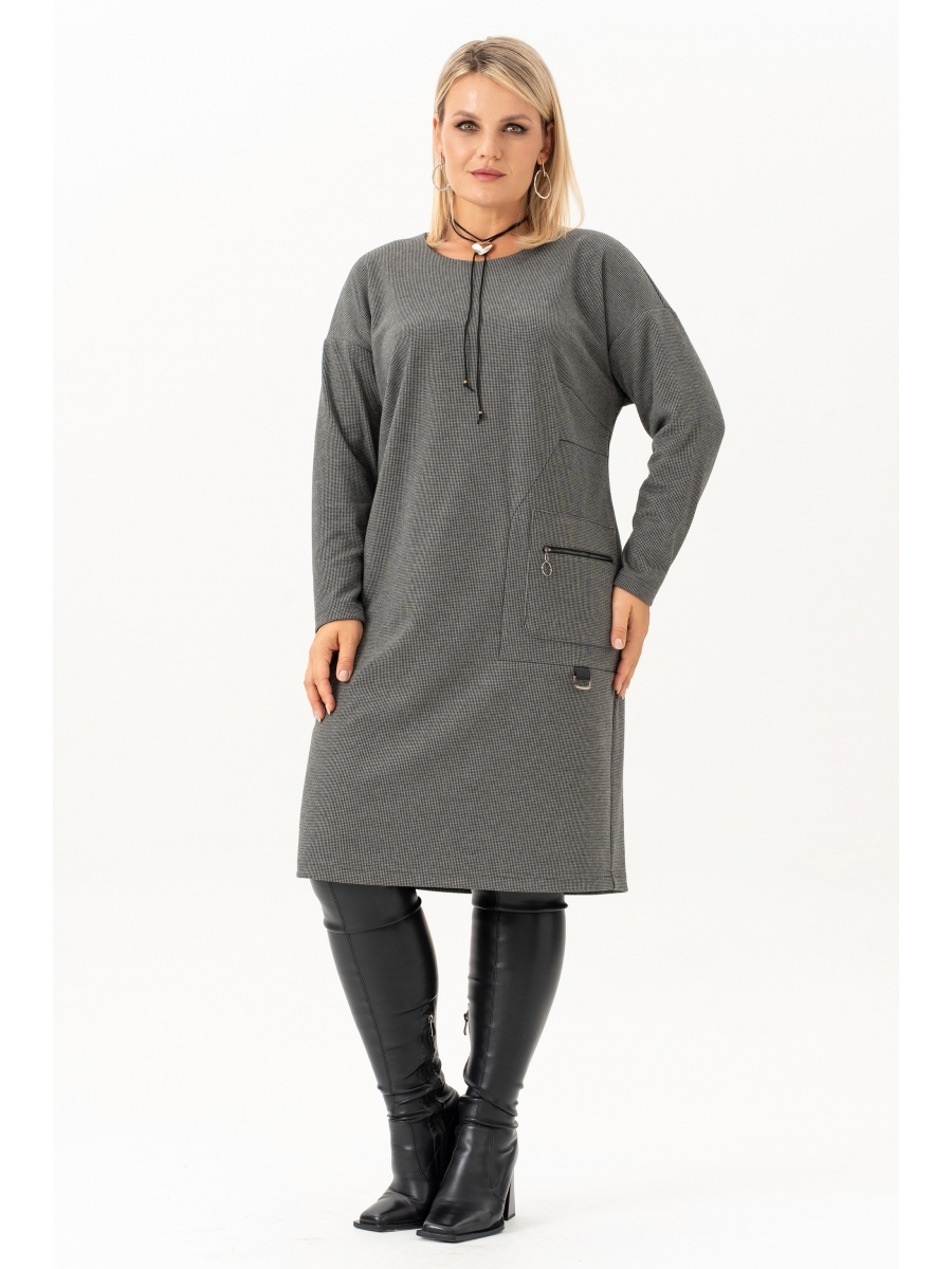 Женское платье прямого силуэта, из трикотажного полотна. На полочке обработан накладной карман с молнией и. Рукав длинный со спущенной линией плеча. Спинка со средним швом и талевыми выточками. Фасон интересен тем, что модельные линии как нельзя лучше подчеркивают плавные изгибы женской фигуры. В данной модели платья Вам не скрыться от неравнодушных взглядов противоположного пола. Оно станет отличным выбором осенью и зимой для офиса, для праздника, на каждый день, а также для прогулок. Платье подойдет как для высоких, так и для невысоких девушек и женщин. Такой стильный наряд для полных станет любимой вещью в гардеробе и сделает Ваш образ незабываемым!