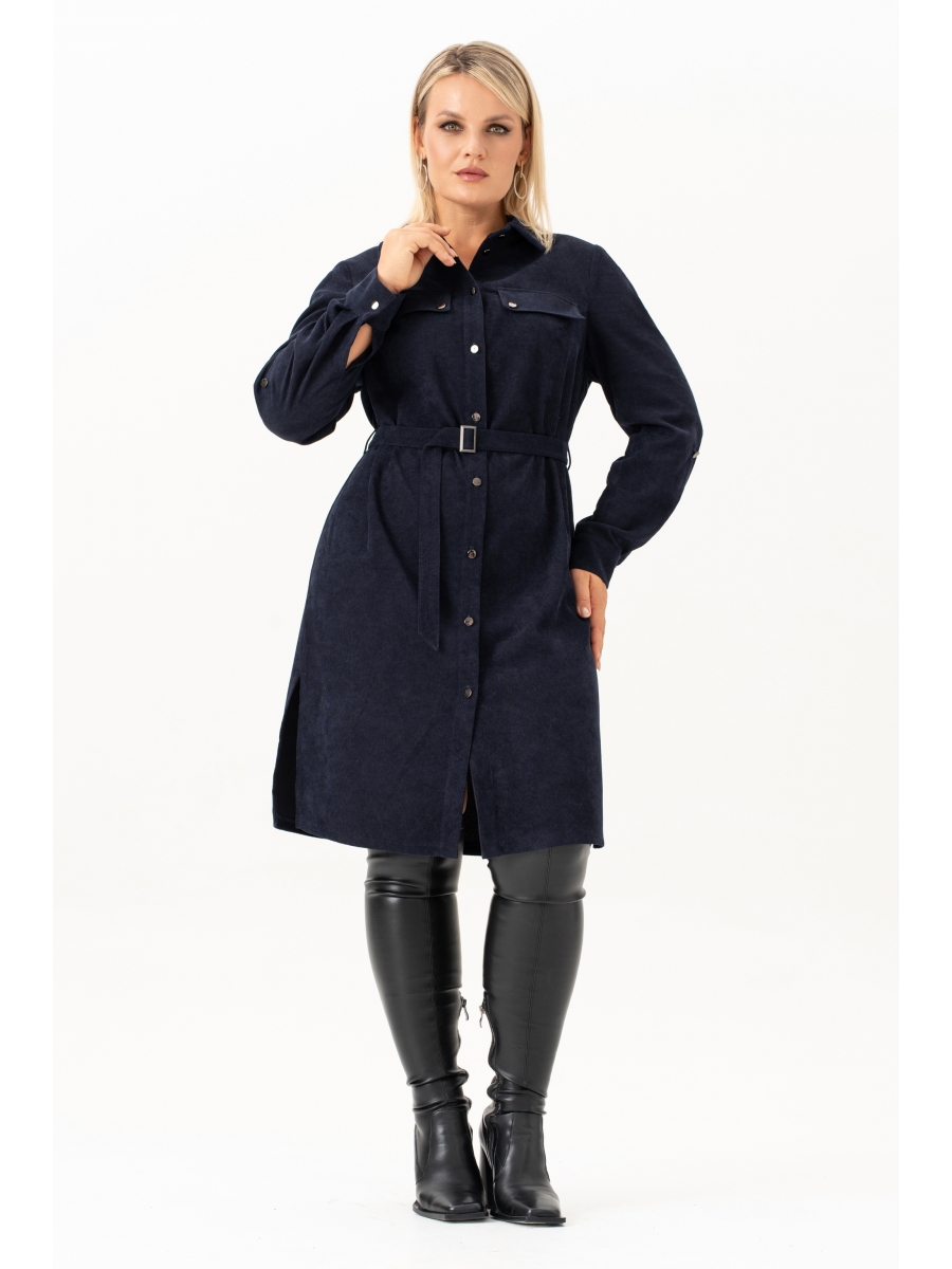 Повседневное женское платье  рубашка из вельвета -это сочетание стиля, строгости и утончённости. Спинка со средним швом и разрезами по низу. Универсальное и практичное платье длиной ниже колена, которая будет уместна для любого случая. По переду платья есть нагрудные выточки от пройм и настроченный  клапан, который украшен декоративными пуговицами.Также есть карманы в боковых швах.  Рукав втачной, длинный, по низу с манжетой и патами. В дополнении к платью идёт пояс . Застёжка спереди на петли и пуговицы на цельнокроеных планках и стояче -отложным воротником на отрезной стойке. Этот вариант вельветового осеннего платья идеален для  женщин любого возраста и  подходит для любого повода: как деловое на работу, в офис, как нарядное.  Женское платье  рубашка из штрукса - это отличная базовая модель, которая должна быть в гардеробе каждой девушки.