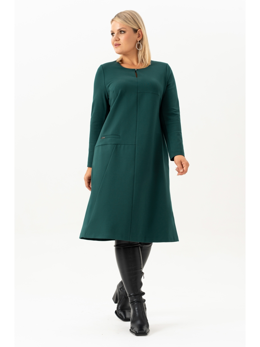 Удобное, стильное, красивое платье из трикотажного полотна прямого силуэта,слегка расширенного к низу. Платье отлично сядет на любую  фигуру. Полочка асимметричного кроя. С одной стороны обработан карман-имитация с втачной листочкой, с другой - карман в боковом шве. Капелька по среднему шву полочки. На спинке, в среднем шве, обработана застежка (потайная молния). Рукав длинный. Простое в уходе, универсальное, базовое платье больших размеров неоднократно порадует вас! Платье легко комбинировать с другими предметами гардероба, добавляя акценты и создавая стильные многослойные образы. Модель очень хорошо стройнит и скрывает неровности фигуры.  Красота в простоте, так можно сказать, про это платье, в котором  Вы будете себя уверенно чувствовать в любой ситуации, можно носить и в офис, и на прогулку, и в ресторан.