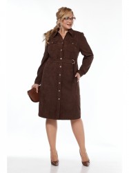 Современное вельветовое платье в стиле сафари — отличный выбор для Вашего гардероба в любое время года. Платье слегка расширено к низу. На переде обработаны кокетки, два кармана c листочками в швах, два накладных кармана с клапанами в области груди, застёжка на 8 петель и пуговиц. Спинка с кокеткой и средним швом. Боковой шов с полукруглыми разрезами внизу. Рукав втачной, двухшовный, с разрезом в локтевом шве, по низу с заложенными складками и манжетой на пуговице. Воротник стояче-отложной со стойкой. Металлическая фурнитура может незначительно отличаться от представленной на фото.